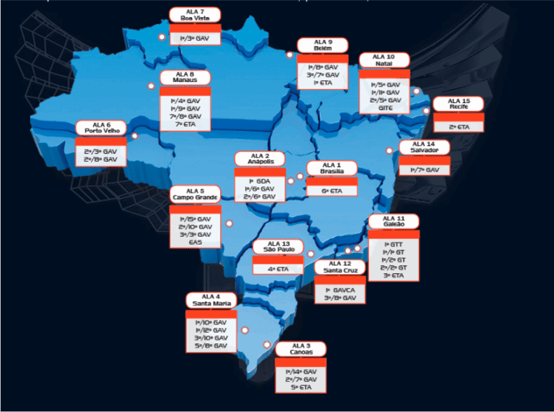 Figura 4: Alas e Grupos de aviação alocados no território brasileiro.
