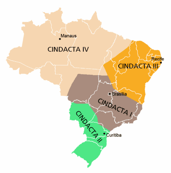 Cada subdivisão do espaço aéreo é designada de Regiões de Informação de Voo, ou FIR, do inglês Flight Information Region. O quatro CINDACTAs são responsáveis por operar 5 grandes FIRs. Esses quatro centros operacionais são: