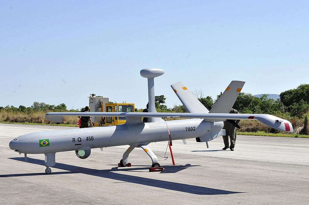Figura 7: À esquerda do leitor, avião radar E99, e à direita, Vant Elbit Hermes 450. Fonte: Wikimedia Commons.