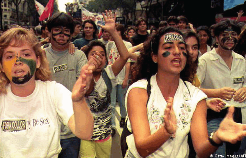 Collor: mais um sinal do isolamento político de quando estava na presidência, a sociedade civil organizada (movimentos sociais, movimentos estudantis, sindicatos e entidades de classe) viraram as costas para o presidente nos momentos decisivos daquele processo. Os grandes protestos contra o então presidente realizados em 1992 foram organizados pela União Nacional dos Estudantes (UNE).