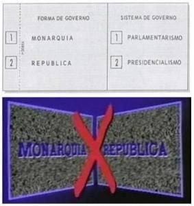 Trinta anos após o fim do último período de parlamentarismo no Brasil, foi convocado um novo plebiscito para que os eleitores decidissem entre presidencialismo e parlamentarismo. Outra escolha feita nesse plebiscito foi entre a república e a monarquia.